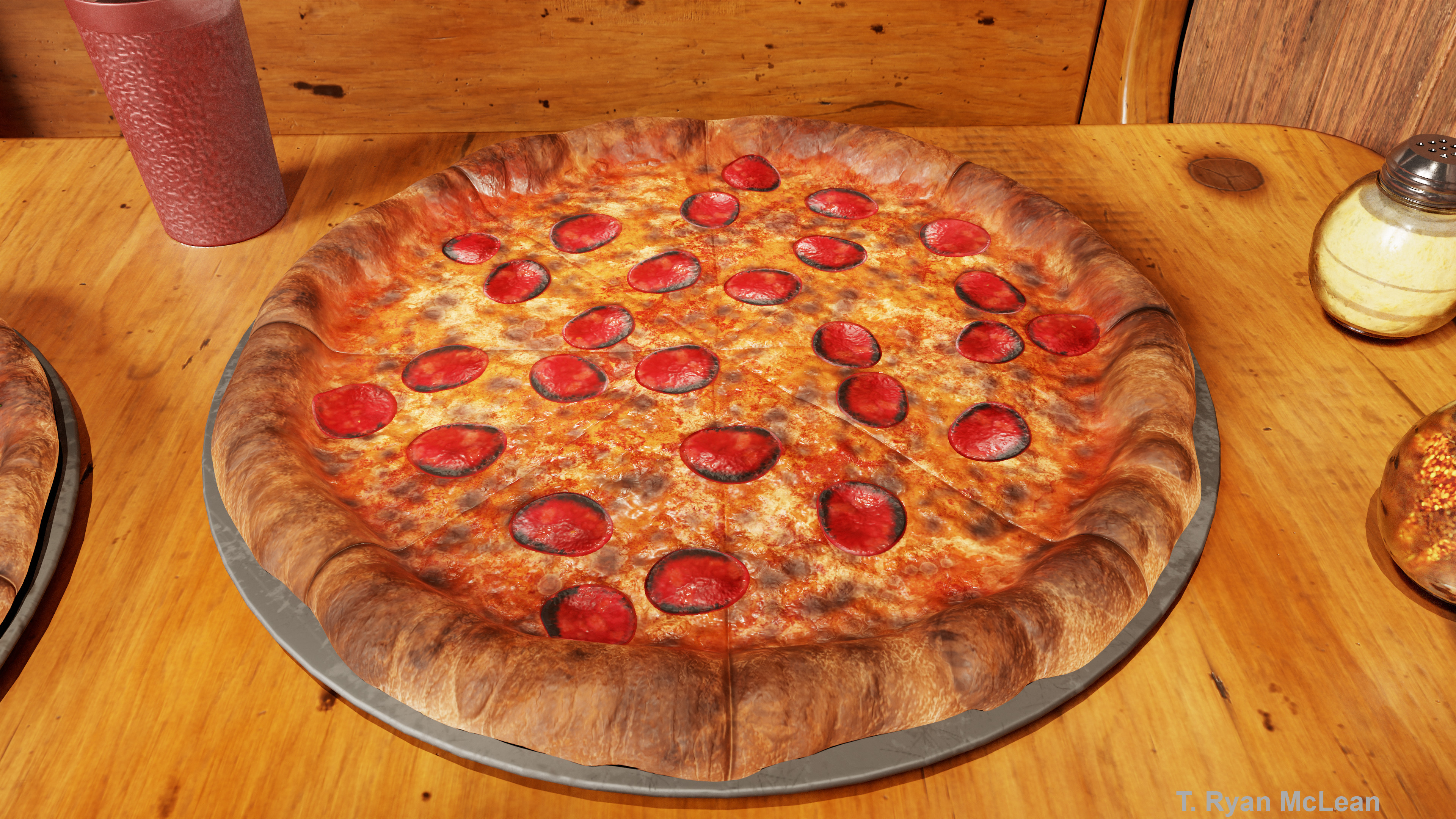 This is my latest procedural material made in Substance Designer. I'm a huge fan of pizza (who isn't?) and I wanted to to test my abilities in Substance Designer by created a NYC style pizza material. I also added some textured plastic red cups as a nod to the 1990's Pizza Hut cups I loved as a kid. The pizzas are both procedural, except for the basil which started as a handpainted mask in Photoshop which was then made into a height and normal in Substance Designer. I then made several copies in 3DS Max to create an atlas and I randomly bent and deformed them to create variation. The atlas was baked in Marmoset and then scattered in Substance Designer via the Atlas Scatter node. Everything is made by me except for the materials for the floor, wall, table and booths. Those were pick ups from the Marmoset library, used only for presentation. All modelling was done by myself.